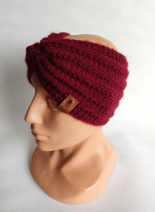 Zadaj pytanie dotyczące produktu: Opaska ręcznie robiona na drutach, bordowa.