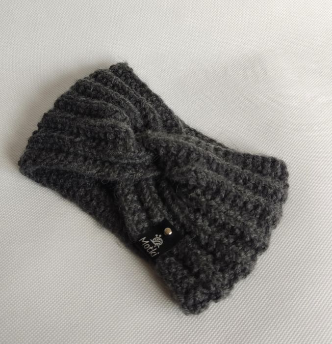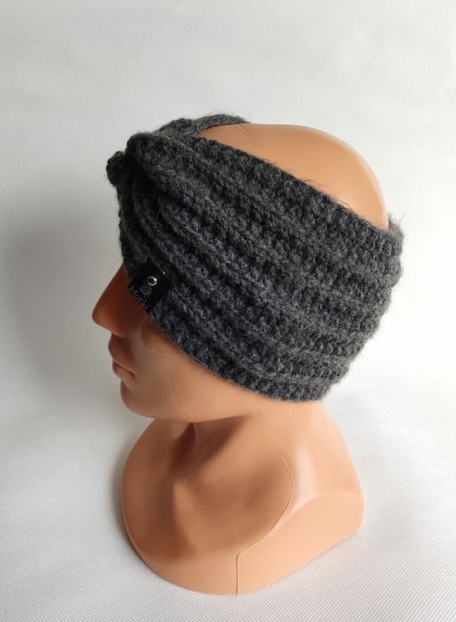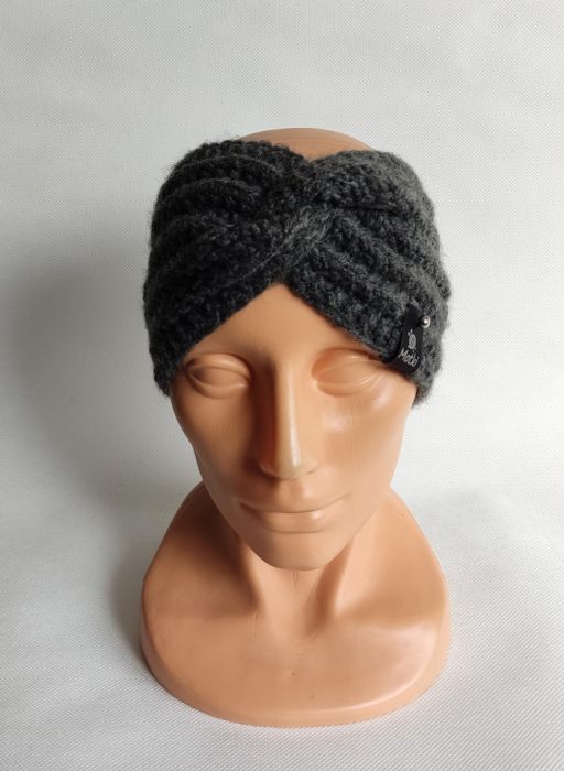 Nazwa produktu: Opaska ręcznie robiona na drutach, ciemna szara, grafitowa.