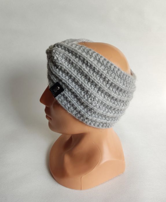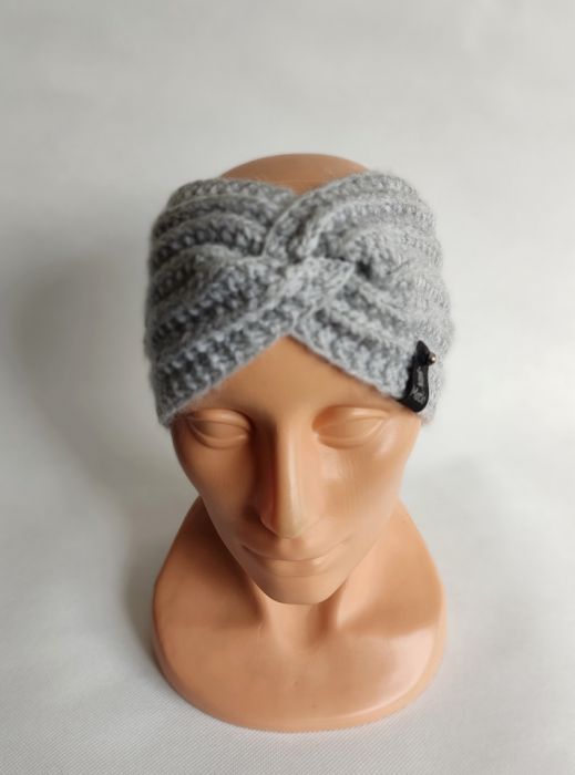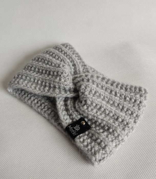 Nazwa produktu: Opaska ręcznie robiona na drutach, jasna szara.