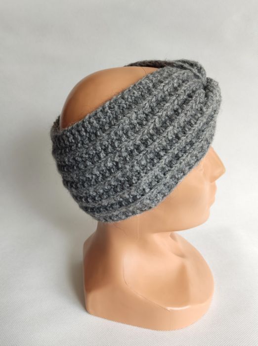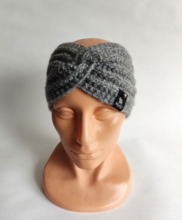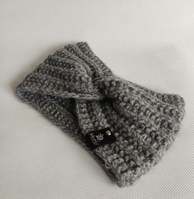 Nazwa produktu: Opaska ręcznie robiona na drutach, szara.