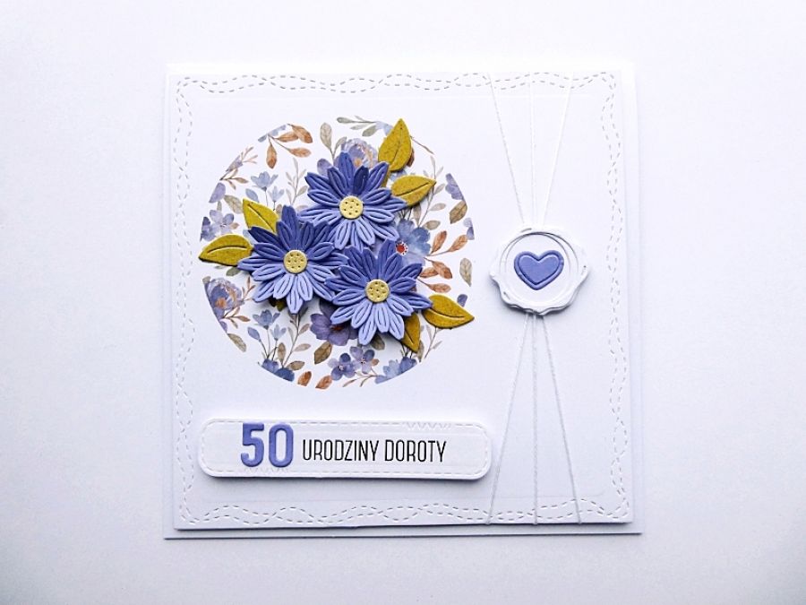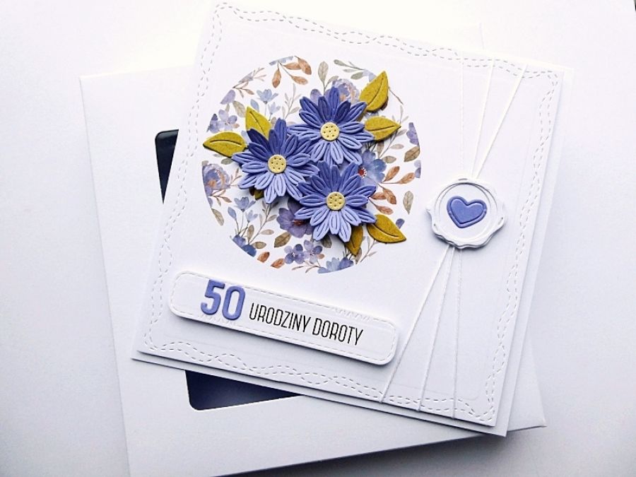Kartka została przygotowana na 50 urodziny, ale może zostać dostosowana do dowolnej rocznicy.