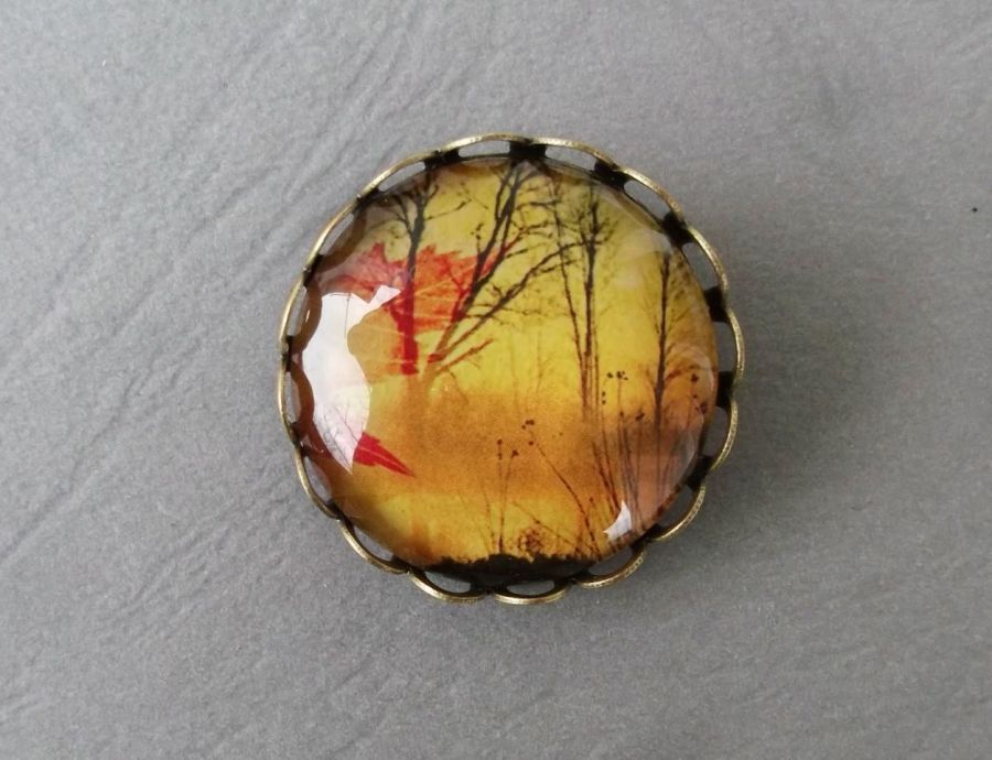Broszka z jesienną grafiką. Oprawa w kolorze starego złota.