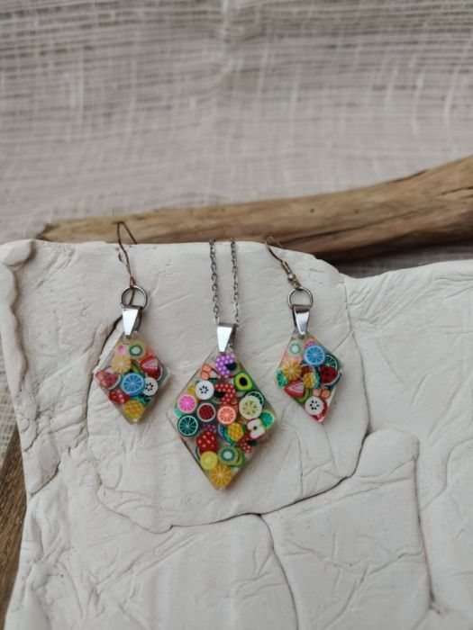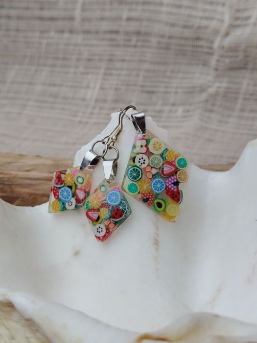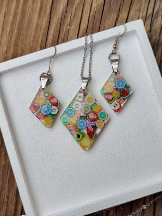 Zadaj pytanie dotyczące produktu: Owocowy Blask – Kolorowy komplet biżuterii z żywicy