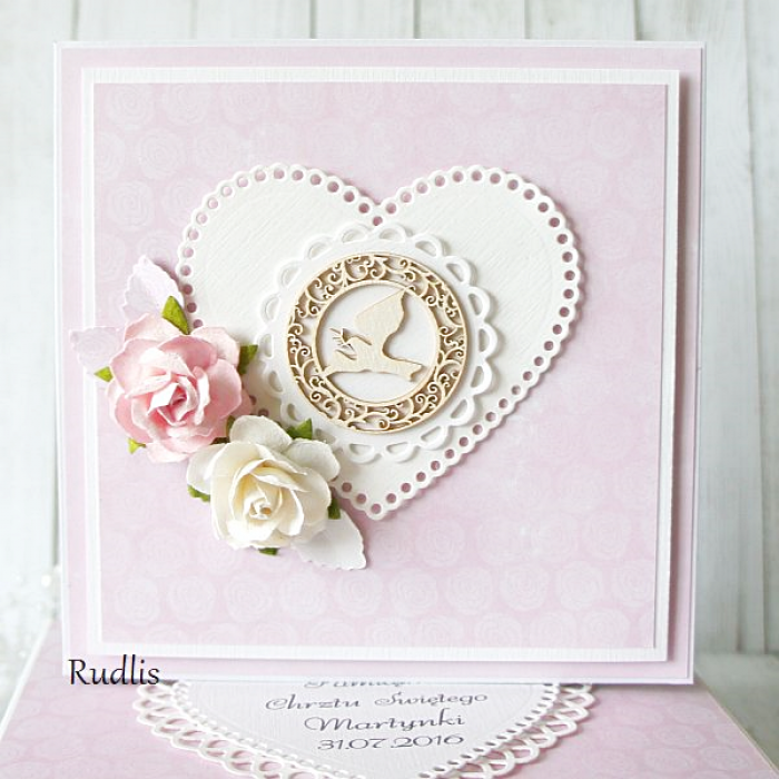 Jestem zachwycona! Karta piękniejsza niż przedstawiona na zdjęciu. Wszystkie moje prośby zostały uwzględnione i wykonane. Na pewno będę jeszcze zamawiać kartki i pudełeczka u Pani Rudlis :D