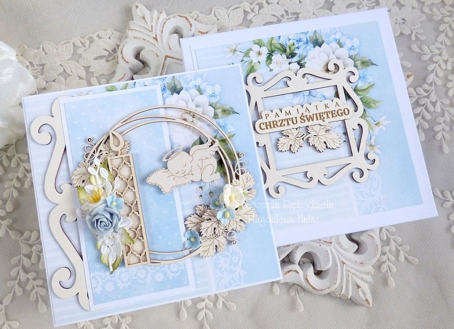 Komplet jest wykonany ręcznie z najwyższej jakości materiałów do scrapbookingu z dbałością o każdy szczegół.