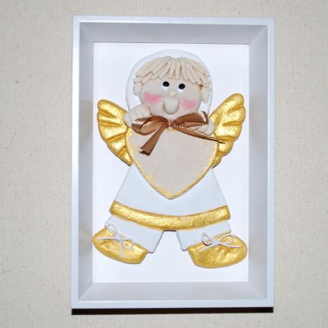 Aniołek z masy solnej w ramce - prezent z okazji Komunii Św. lub Chrztu Św.