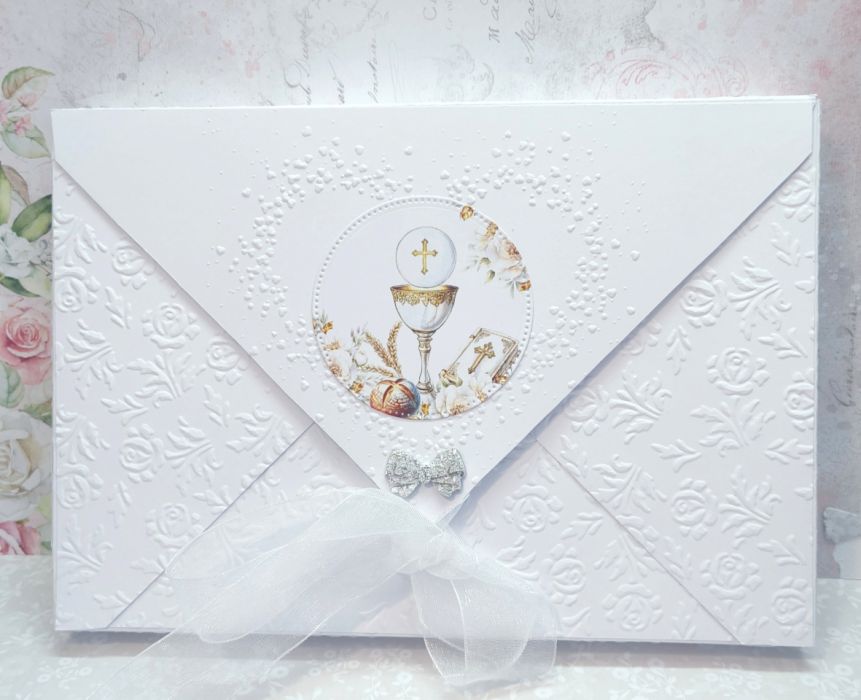 Idealna propozycja dla osób, które szukają niepowtarzalnej, eleganckiej kartki komunijnej, tworzonej z sercem i pasją