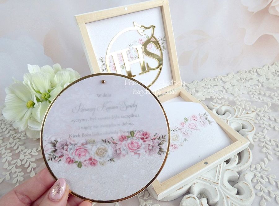 Nazwa produktu: Pamiątka komunijna w drewnianym pudełku 611