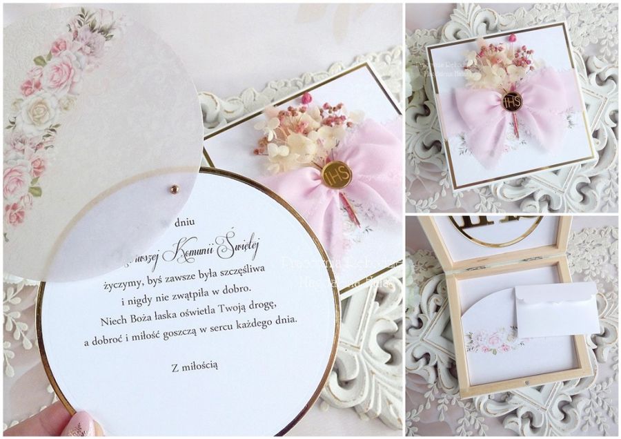 Zadaj pytanie dotyczące produktu: Pamiątka komunijna w drewnianym pudełku 611