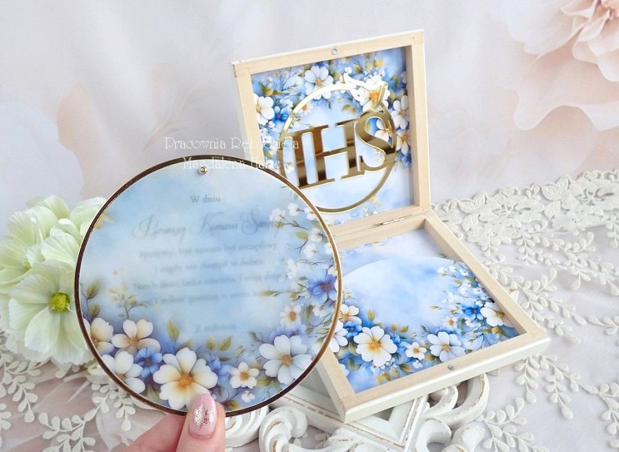 Zadaj pytanie dotyczące produktu: Pamiątka komunijna w drewnianym pudełku 615