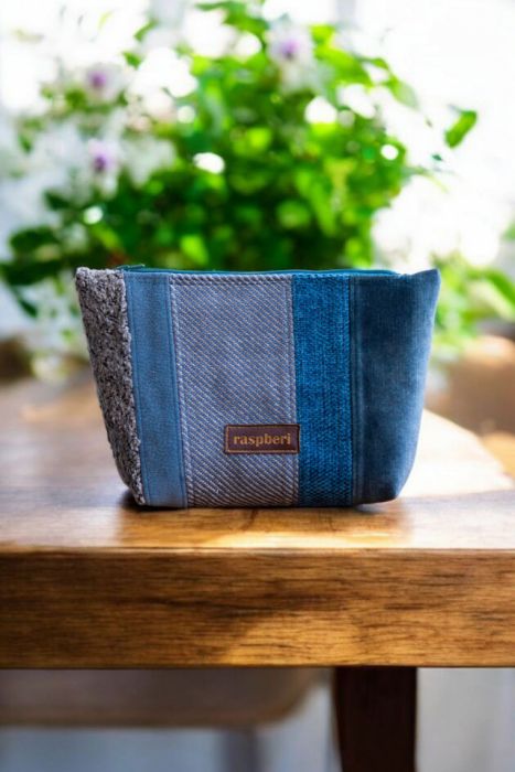 Zadaj pytanie dotyczące produktu: Patchworkowa duża kosmetyczka w kolorze niebieskim