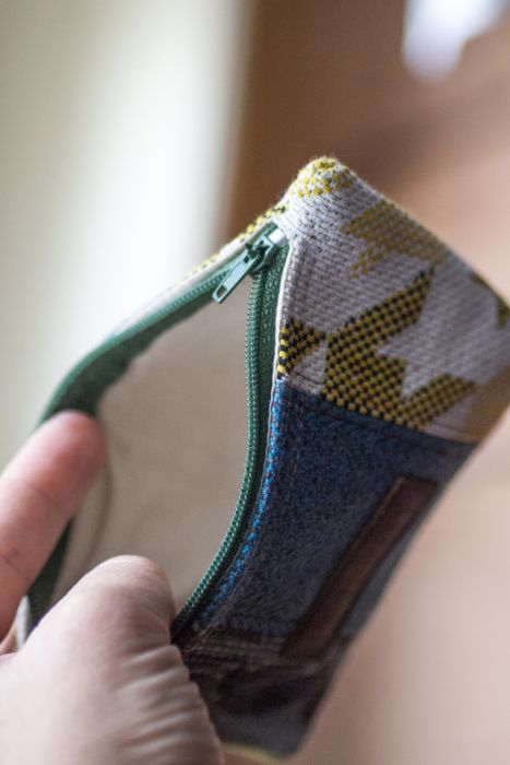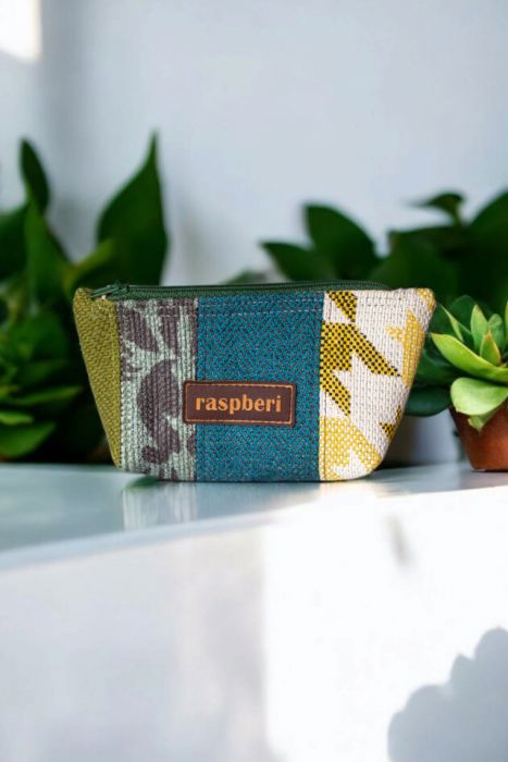Kosmetyczka w rozmiarze MINI wykonana z kilku rodzajów kolorowych tkanin. Stworzona w duchu no waste.