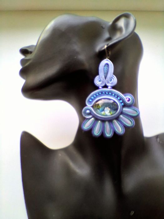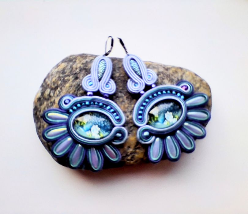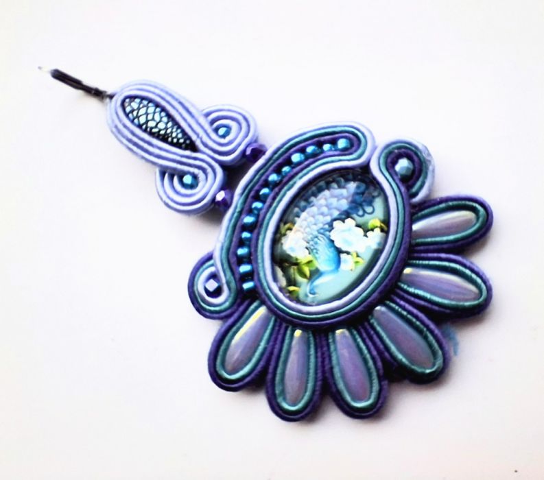 Kolczyki wykonane w modnej technice haftu sutaszowego. Jest ona pracochłonna, ale daje piękne efekty.