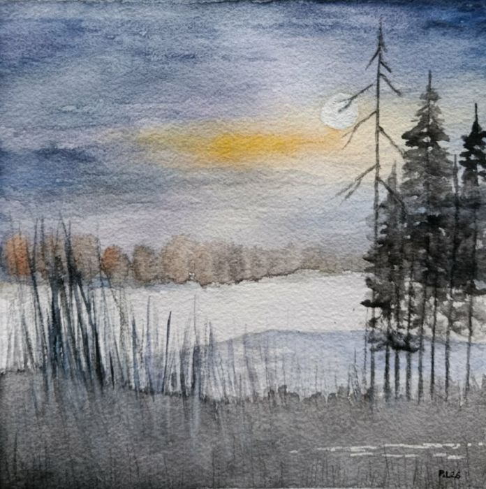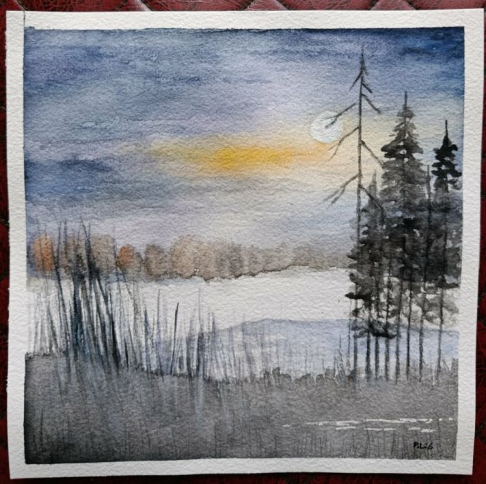 Zadaj pytanie dotyczące produktu: Pejzaż-akwarela formatu 20x20 cm.