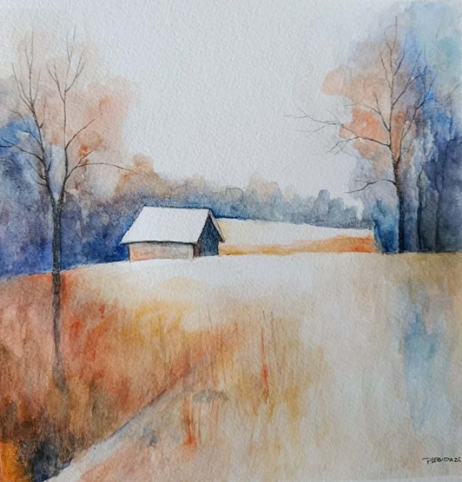 Zadaj pytanie dotyczące produktu: Pejzaż-akwarela formatu 25/25 cm