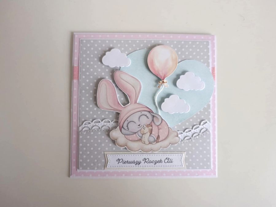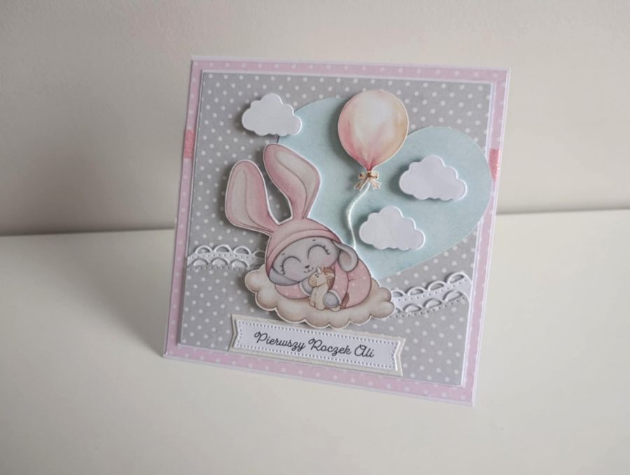 Zadaj pytanie dotyczące produktu: Personalizowana kartka na urodziny roczek królik
