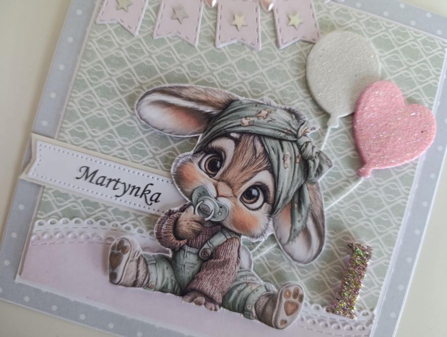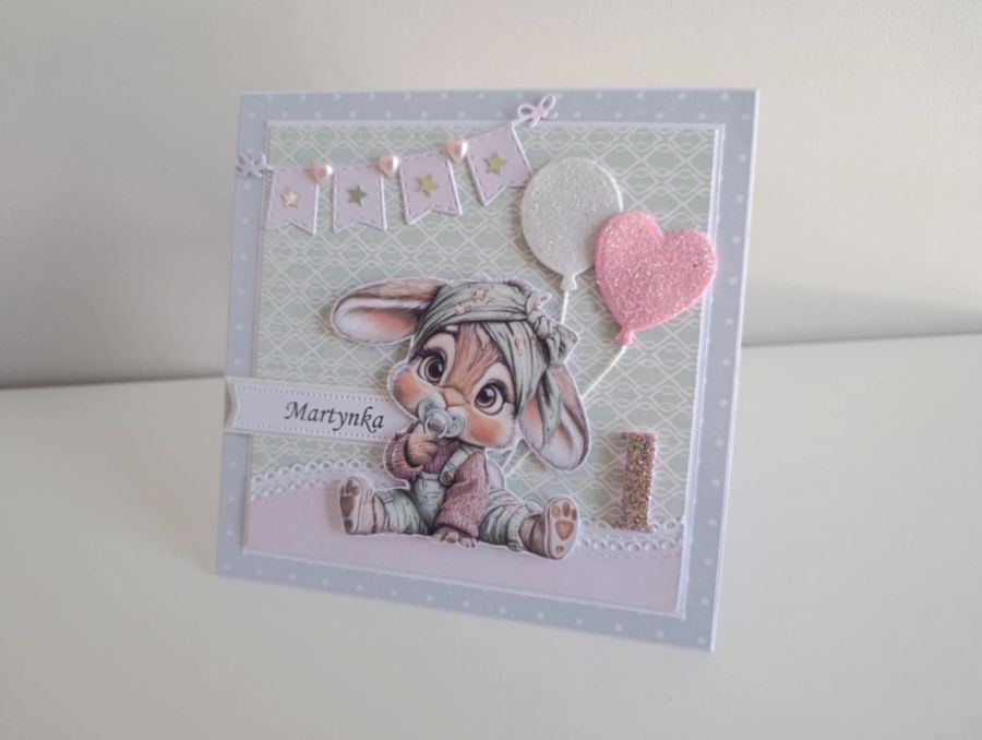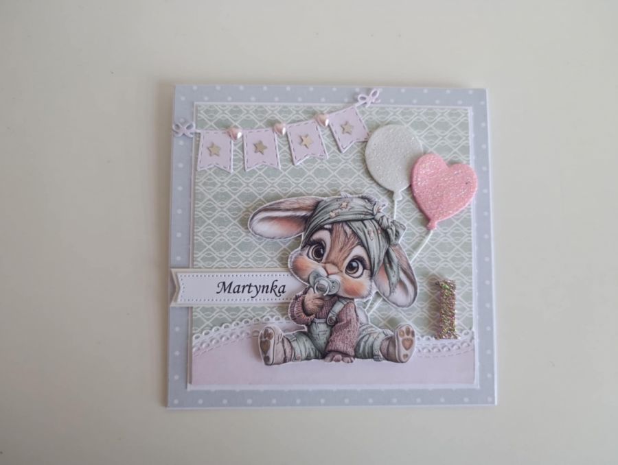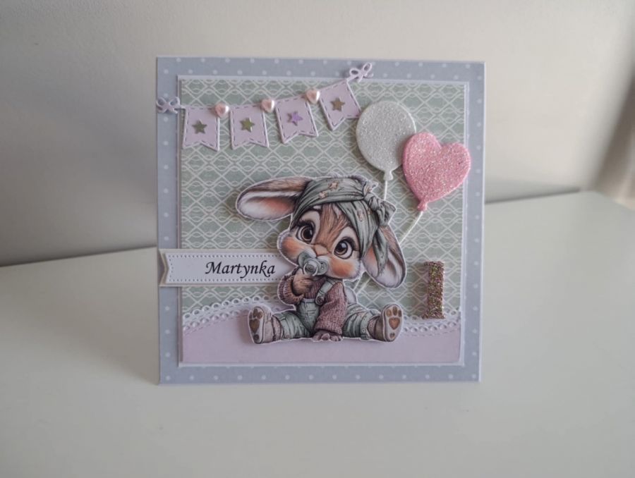 Zadaj pytanie dotyczące produktu: Personalizowana kartka na urodziny roczek z króliczkiem
