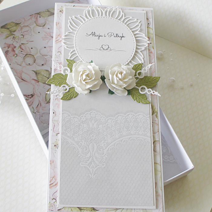 Kartka i pudełko z okazji ślubu piękniejsze w rzeczywistości niż na zdjęciu. Jestem zachwycona i gratuluje precyzji i talentu. Będę wracać :)
