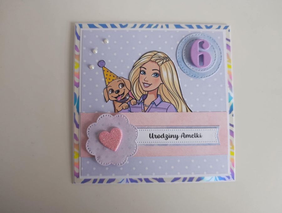 Zadaj pytanie dotyczące produktu: Personalizowana kartka urodzinowa Barbie z pieskiem