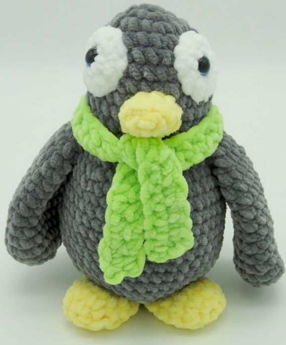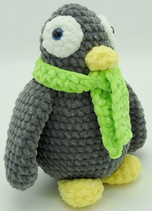 Szydełkowy pingwinek wykonana z delikatnej włóczki o strukturze pluszu. Maskotka jest wypełniona antyalergicznym wkładem i ma założone bezpieczne oczka. Wszystkie elementy są przyszyte. Można prać ręcznie.