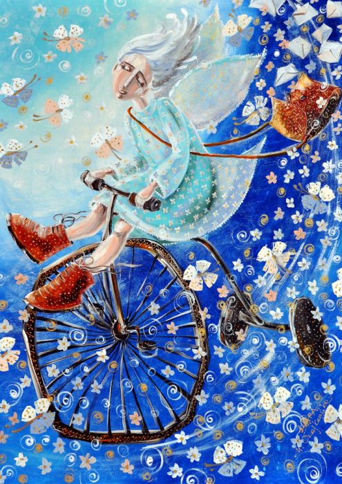 Reprodukcja pracy własnej zatytułowanej "Anioł dobrych wiadomości". Wydrukowana na wysokiej jakości satynowanym papierze o gramaturze 200-220 g/m² o wymiarze 29,7 x 42 cm (format A3), w technologii druku pigmentowego. Technologia ta zapewnia doskonałe odwzorowanie kolorów oraz trwałość i odporność na promieniowanie UV. Obraz bez oprawy.