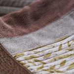 Duży, damski plecak miejski zapinany na suwak z kilku rodzajów kolorowych tkanin w połączeniu z brązową tłoczoną ekoskórą.