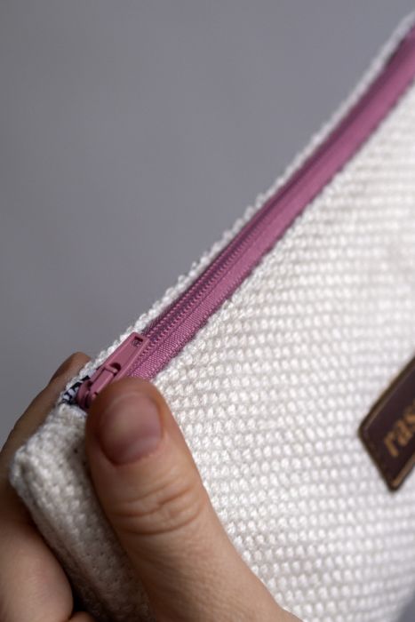 Zadaj pytanie dotyczące produktu: Pleciona kosmetyczka MIDI ecru różowy suwak