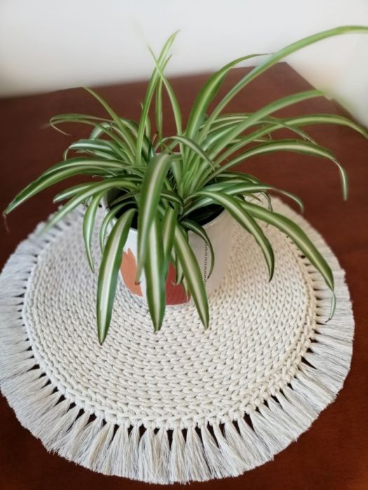 Dekoracyjne podkładki BOHO na stół,pod talerz , wykonane ze bawełnianego sznurka o grubości 3mm z frędzlami o długości około 2-4cm