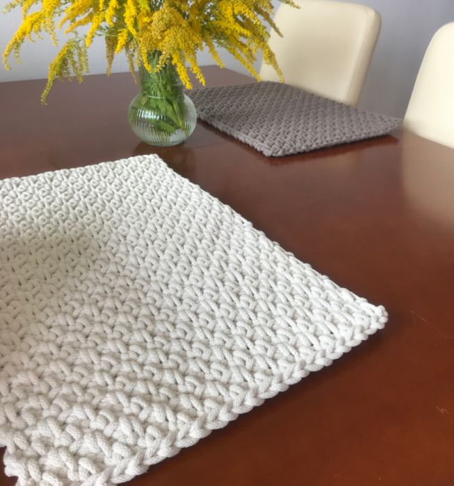 Podkładki na stół,pod talerz , wykonane ze bawełnianego sznurka o grubości 5mm o niepowtarzalnym wzorze.
