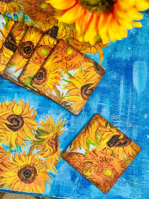 Zadaj pytanie dotyczące produktu: Podkładki pod kubki, dekoracja ze słonecznikami, sielskie, prezent