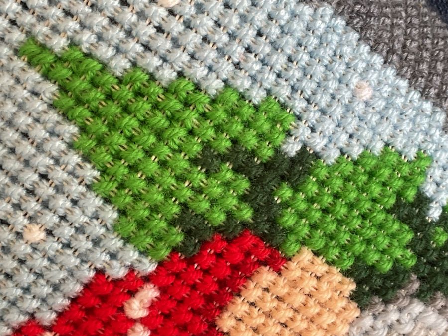 Szyte, Haftowane,Haft na kanwie poduszkowej.
