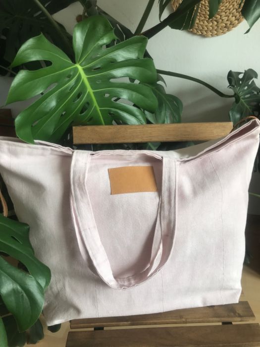 Zadaj pytanie dotyczące produktu: Pojemna torba plażowa z grubej bawełny w różowym kolorze.