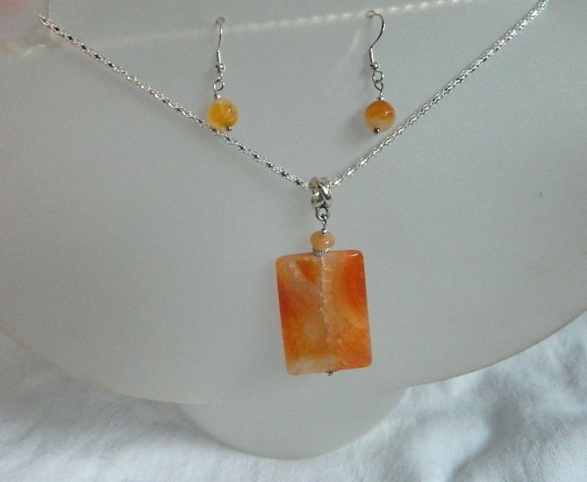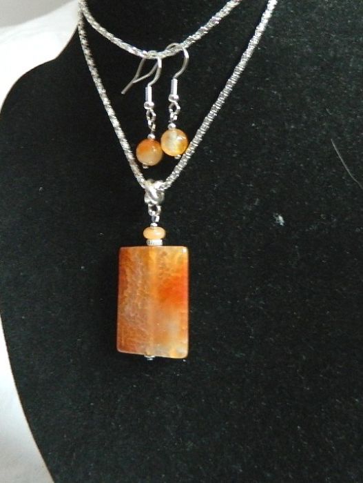 Zadaj pytanie dotyczące produktu: Pomarańczowy agat pajęczy, wisiorek i kolczyki, zestaw biżuterii