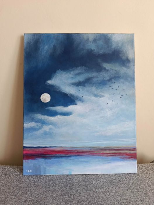 Obraz namalowany w technice akrylowej na płótnie o wymiarach 50/40 cm. Obraz posiada pomalowane boki. Nadaje się od razu do powieszenia na ścianie. Obraz jest sygnowany, sprzedawany bez oprawy. Zapraszam
