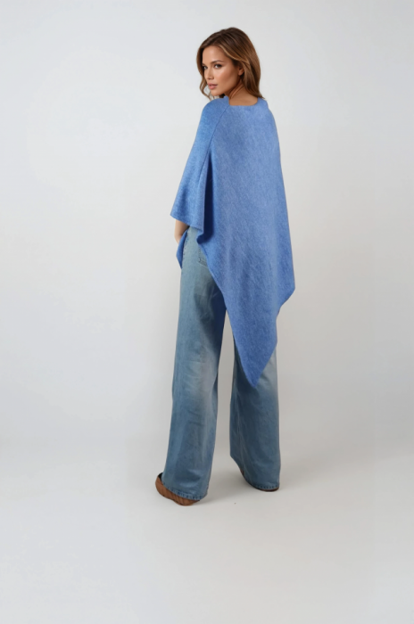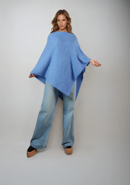 To piękne dzianinowe ponczo to niezbędny dodatek w Twojej szafie ze względu na swoją prostotę, elegancję i wszechstronność. Ponczo w kolorze niebieskim, wykonane jest z bardzo miękkiej i przyjemnej dzianiny dzięki czemu idealnie dopasowuje się do sylwetki.