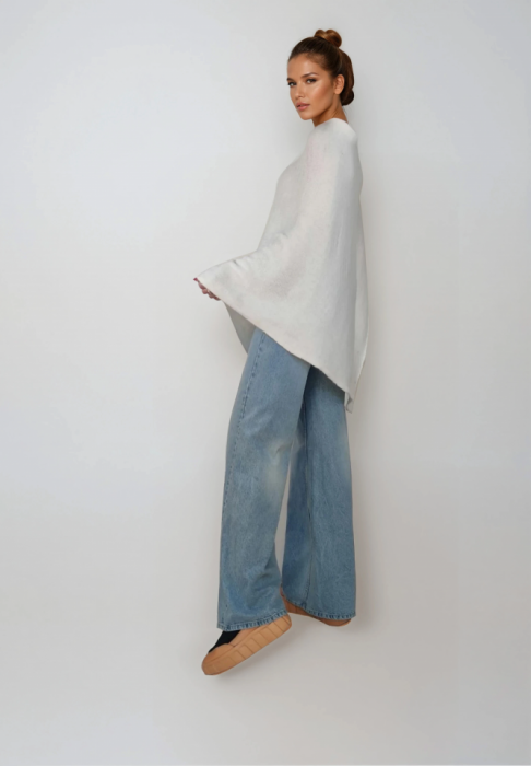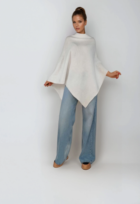 To piękne dzianinowe ponczo to niezbędny dodatek w Twojej szafie ze względu na swoją prostotę, elegancję i wszechstronność. Ponczo w kolorze ecrii wykonane jest z bardzo miękkiej i przyjemnej dzianiny dzięki czemu idealnie dopasowuje się do sylwetki.