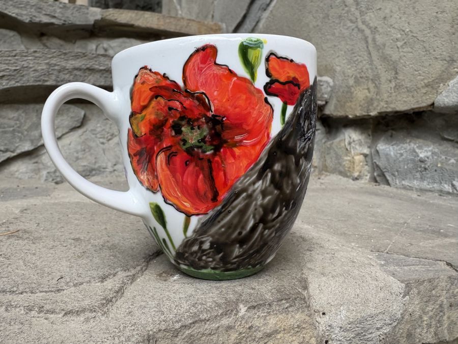 Porcelanowy kubek o pojemności 300ml ręcznie malowany farbami do porcelany i utrwalony termicznie. Niepowtarzalny i wyjątkowy. Zrób prezent sobie lub bliskim.