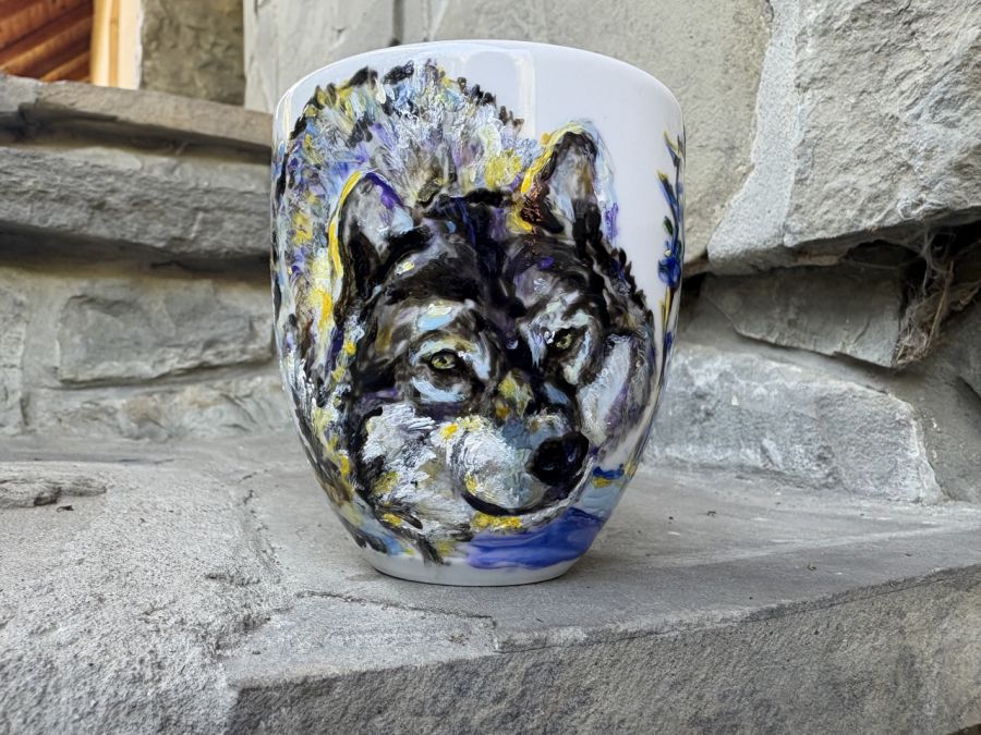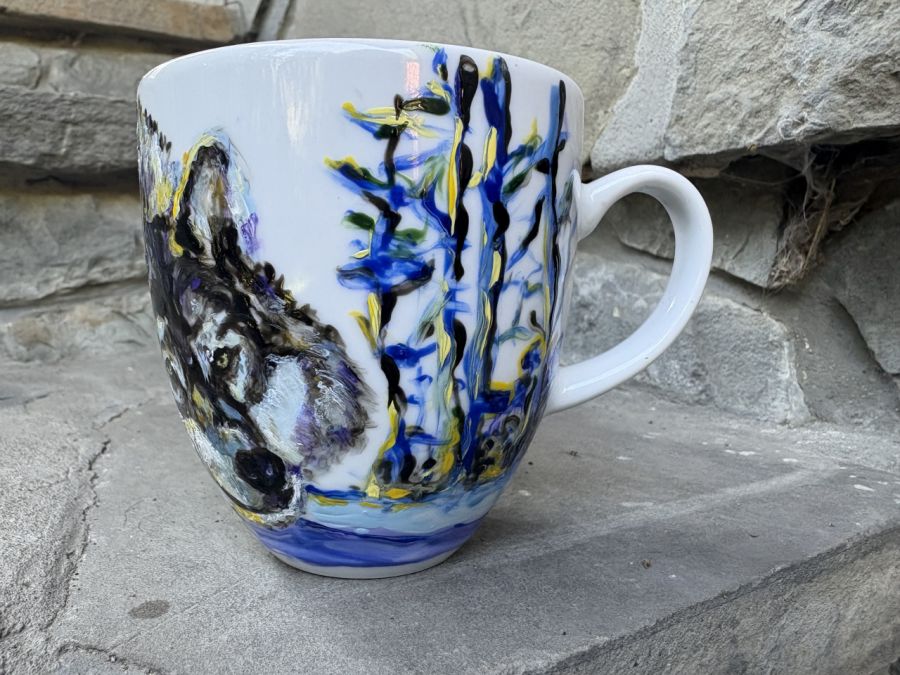 Zadaj pytanie dotyczące produktu: Porcelanowy kubek ręcznie malowany Zimowy wilk