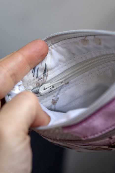Idealny na karty płatnicze oraz pieniądze. Zapinany na suwak, z przodu kieszonka na drobne, w środku bawełniana podszewka i kieszonka na suwak.