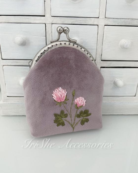 Zadaj pytanie dotyczące produktu: Portmonetka damska “Kwiat koniczyny”, welurowa haftowana ręcznie