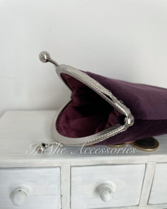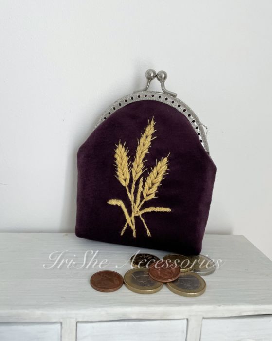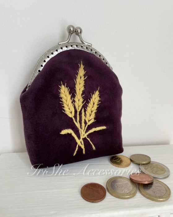 Elegancka portmonetka "Kłosy" z autorskiej kolekcji portmonetek haftowanych w kolorze oberżyny (głęboki ciemny śliwkowy) – ręcznie uszyta i haftowana, wyjątkowo lekka i miękka, doskonała na każdą okazję!