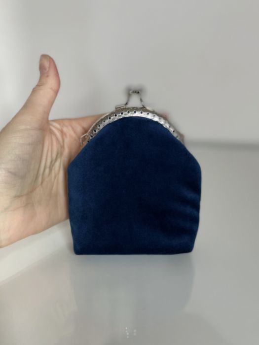 Elegancka granatowa portmonetka "Chaber" – ręcznie uszyta i haftowana, wyjątkowo lekka i miękka, doskonała na każdą okazję!