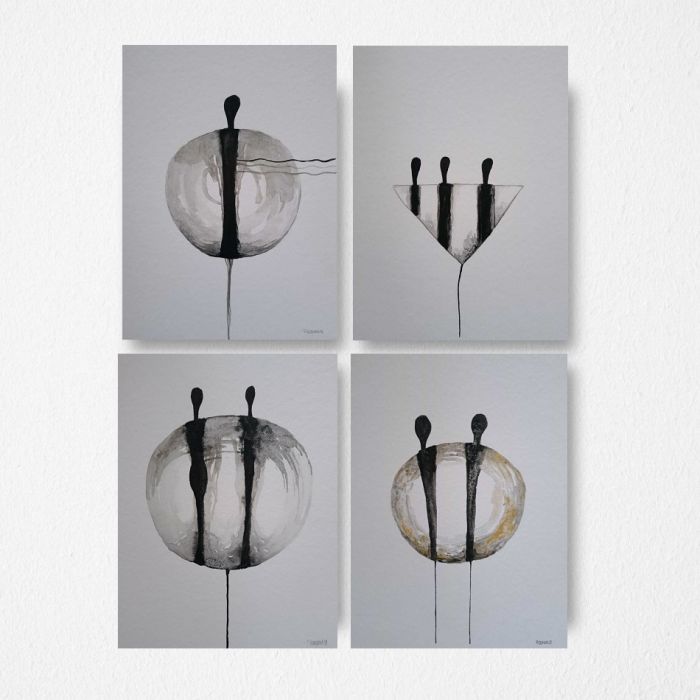 Cztery oryginalne akwarele, wykonane farbami akwarelowymi na grubym papierze akwarelowym 425 g/m2 . Prace są sygnowane. Sprzedawane jako komplet. Inspirowałam się pracami Edena Some. Wymiary prac 32/24 cm x4. Kolory mogą się nieznacznie różnić od oryginału, sprzedawane bez oprawy, Zapraszam :)