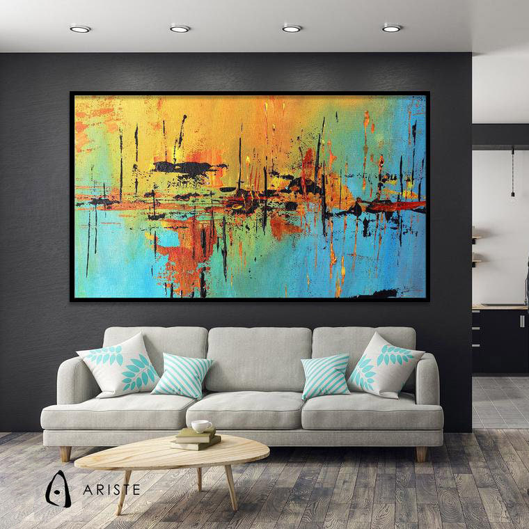 Obrazów nie wolno wieszać na zawnątrz lub w wilgotnych pomieszczeniach jak np. łazienka. Płótno wchłonie wilgoć - w rezultacie akrylowa powłoka może zacząć oddzielać się od podobrazia.