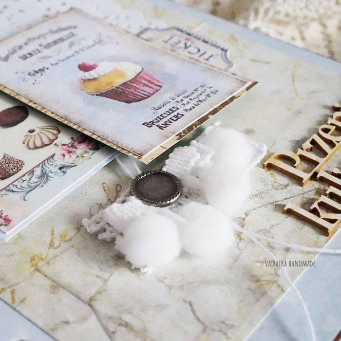Na okładce - tematyczna grafika. Ozdobiony ozdobnym metalowym ćwiekiem, koronką i słodką grafiką.