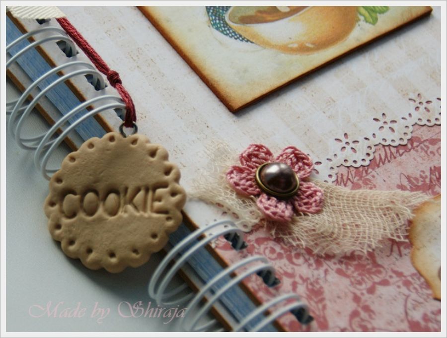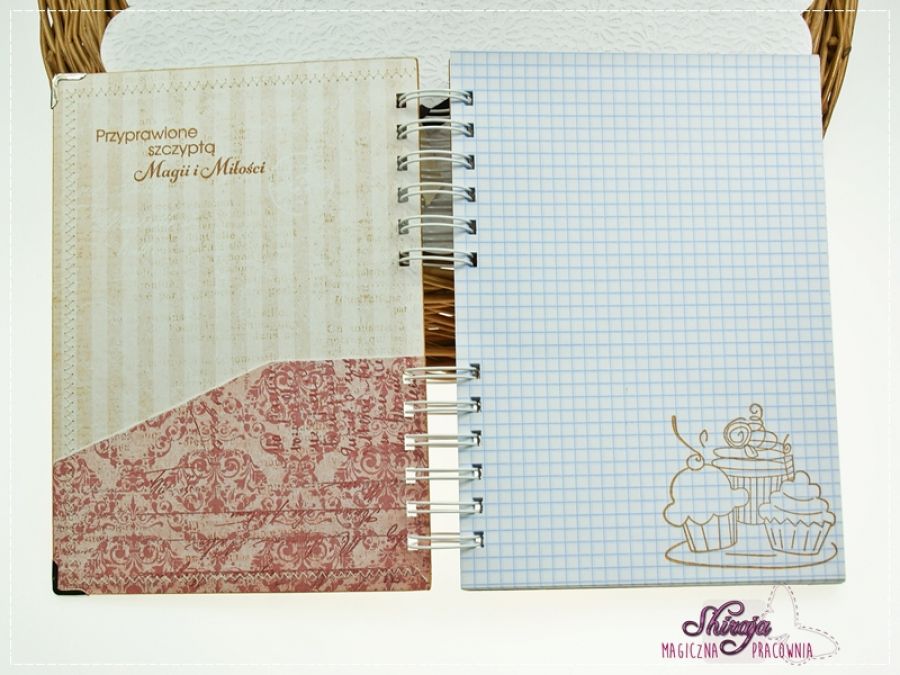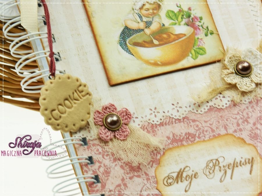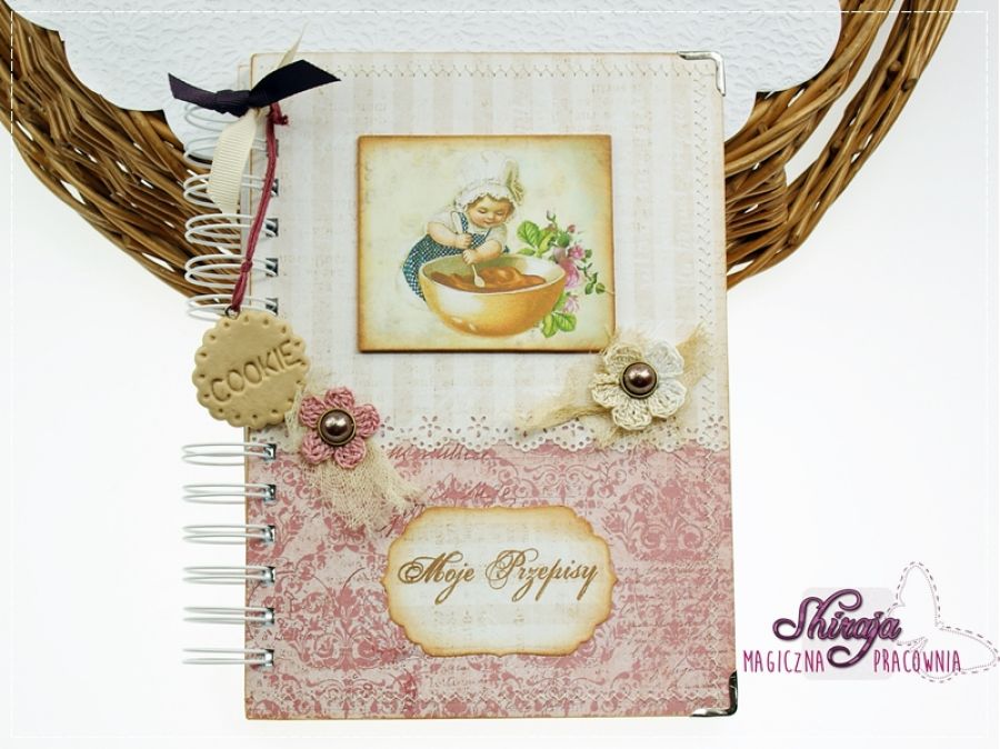 Wyjątkowy notes w formacie A5 na przepisy kulinarne. Wykonany własnoręcznie. Uroku dodaje grafika z kuchareczką, oraz zawieszka ciasteczko.