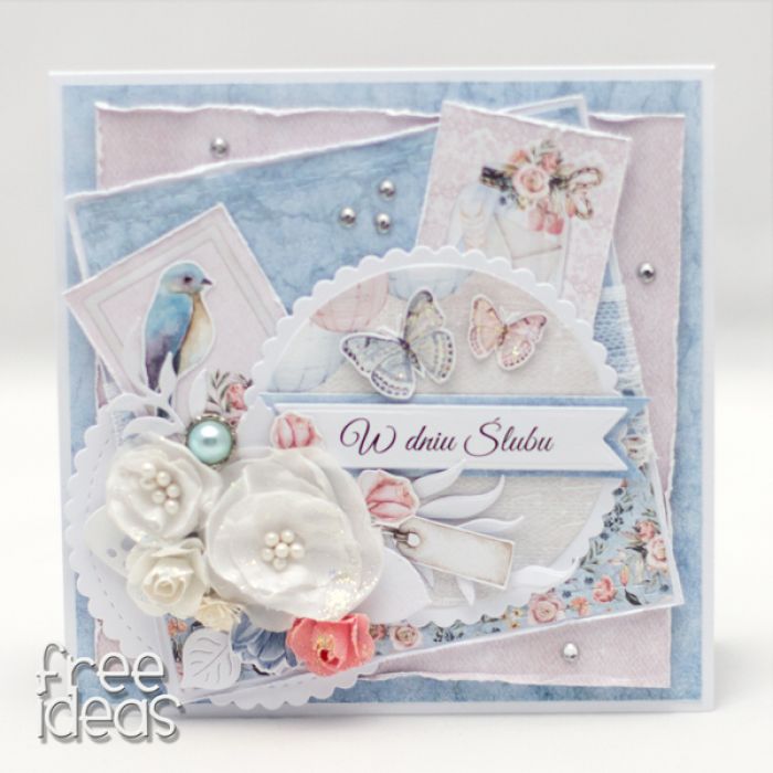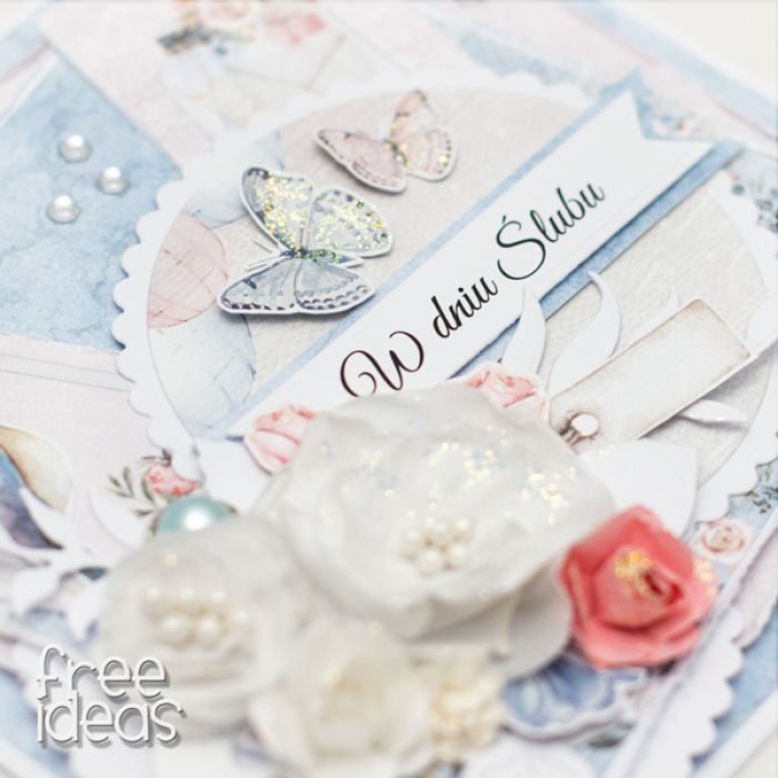 Jedyna w swoim rodzaju kartka ślubna z ręcznie wykonanymi ozdobami.