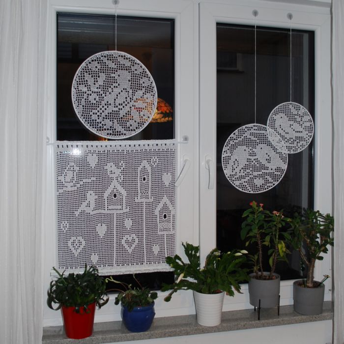Zadaj pytanie dotyczące produktu: Ptaszki w oknie - zestaw dekoracyjny na okno, rękodzieło na szydełku