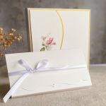 W środku eleganckiego pudełka jest miejsce na życzenia dla nowożeńców.