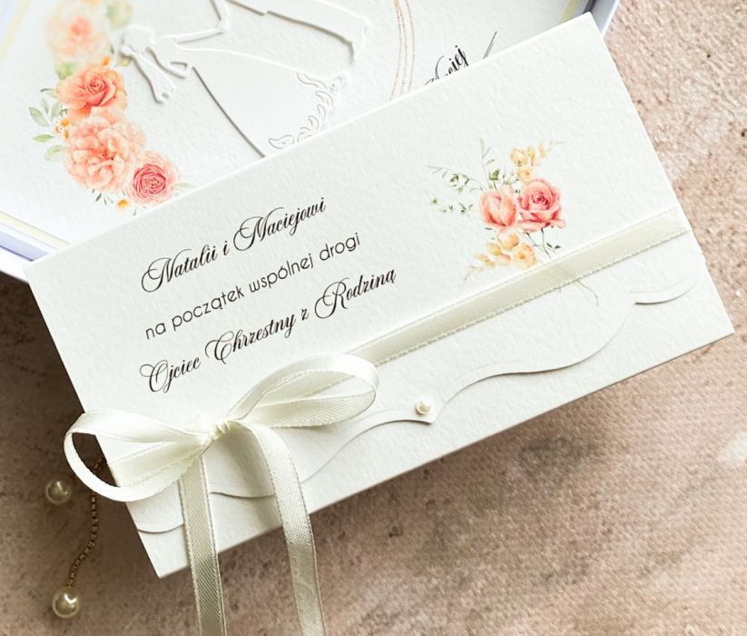 W zaprojektowanych przez nas pudełkach zmieszczą się zarówno drobna biżuteria jak i gotówka, najczęściej wręczana nowożeńcom.